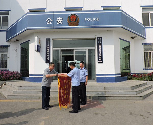 赠送锦旗后,张涛等人协同警官程效周走进浑南新城派出所接待室进行了座谈交流,双方深入探讨了高校安全教育事业所面临的新问题、新挑战,面对网络信息时代的快速发展,相互交流了如何提升学生安全防范意识,并有针对性地协商了警校联合防控的详尽举措。