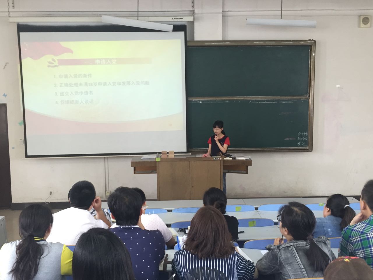 培训通过PPT形式讲解了在新《细则》修订的新背景下高校发展党员工作的新要求,并结合学校基层党组织建设实际,分别从申请入党、入党积极分子的确定和培养、发展对象的确定和考察、预备党员的接受和预备党员的教育、考察和转正等五个方面细致的介绍了每个环节的相关要求、注意事项和需要向上级党委备案的内容。
