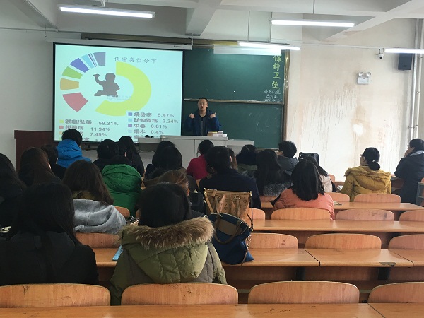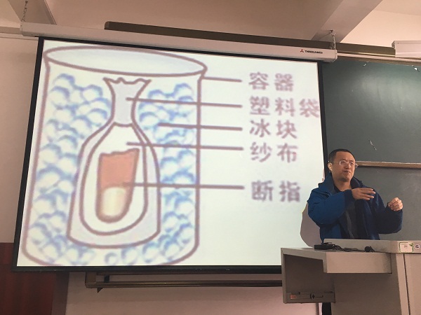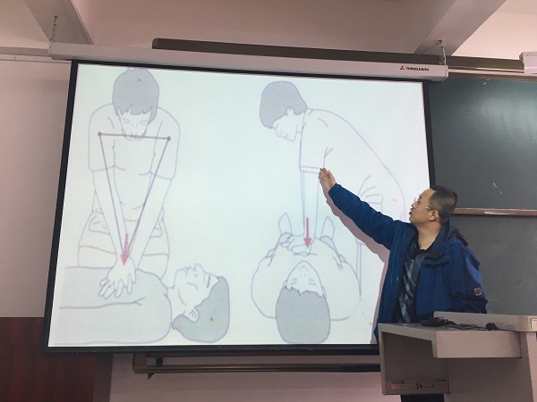 杨林以实用简单为主要思路,从常见的急症的类型、急症的应急处理方法以及急症的相关预防三方面进行讲解。在讲授过程中,他通过图片、生活实例以及现场急救方法演示为与会教师呈现了一场别开生面的讲座。同时,杨林还将自己从医近二十年的生活感悟与与会教师分享,他认为为人要以积极乐观的心态面对生活,要怀有一颗感恩的心,对待任何问题要用微笑来积极应对,保持自身的心理健康,从而促进身体上的健康。