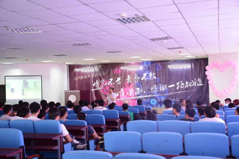 欢送会以一段温情感动的视频拉开帷幕,“你是否还记得,那刚刚进入校园的你,最初的壮志和梦想;你是否还记得,每一次举杯畅谈时对自己许下的承诺和期望;你是否还记得,每个星光夜晚下闲走校园的你、埋头苦读的你、奔跑玩闹的你。”短片过后,开始了轻松有趣的学生互动访谈环节,同学们每一个回忆,每一次发言都让现场掌声、笑声不断。接着,由毕业生代表发言,并组织部分同学上台开展“对视三分钟”活动和毕业生歌舞展示,同学们有欢声笑语、有热泪盈眶,百感交集。值得一提的是,2011级学生的辅导员老师李丹老师、钟建东老师分别带来了祝福VCR,吕品超老师现场演唱《光阴故事》,老师们纷纷用各自不同的方式表达自己的期望和祝福,同时也将整场欢送会推向高潮。在欢送会的尾声,交通与机械工程系为毕业生赠送了私人订制的离别礼物,至此,整场欢送会落下帷幕。