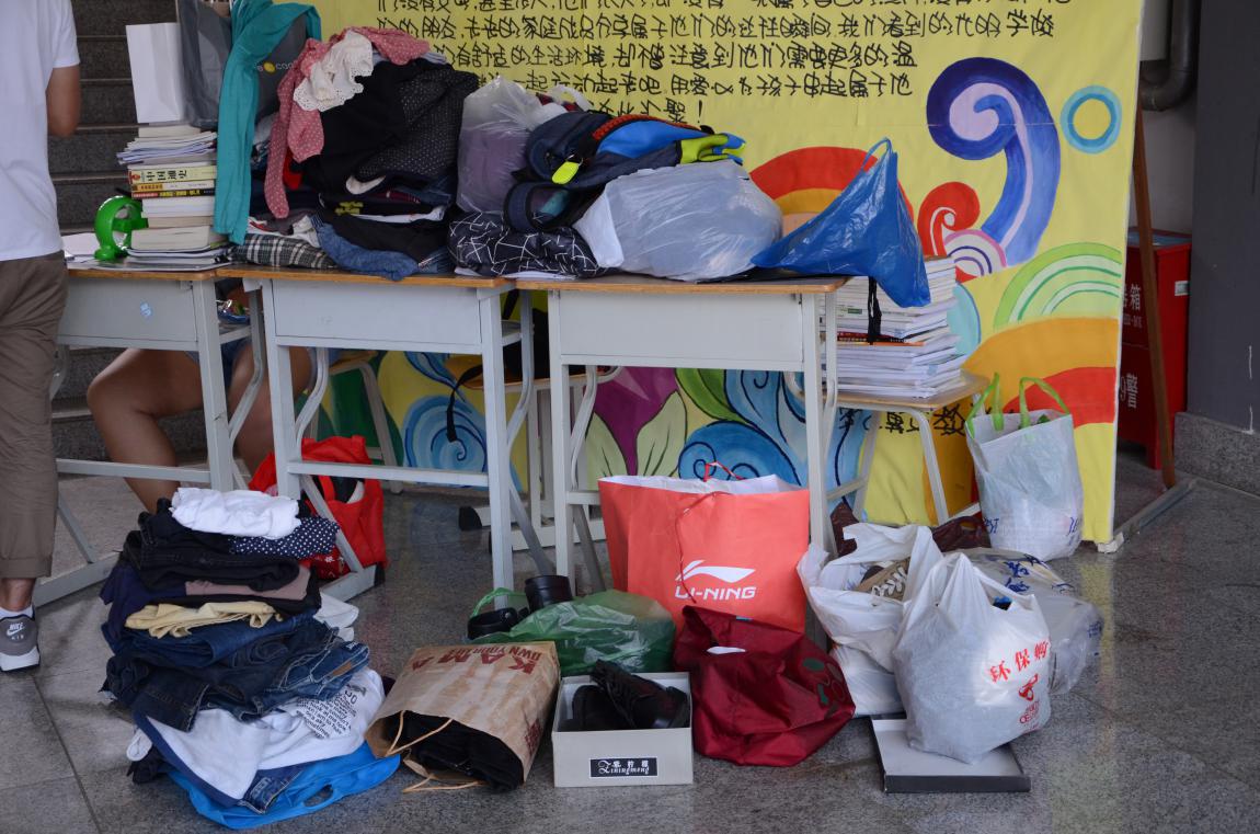 活动以系内宣传和收集捐赠物品为主要形式,对现场收集到的物品登记统计,并进行初步整理。虽然天气炎热,但活动现场老师和学生热情高涨,争先捐赠精心挑选的书籍、闲置的衣物、学习用品、体育用品等。活动当天,整个教学楼大厅洋溢着爱的氛围。